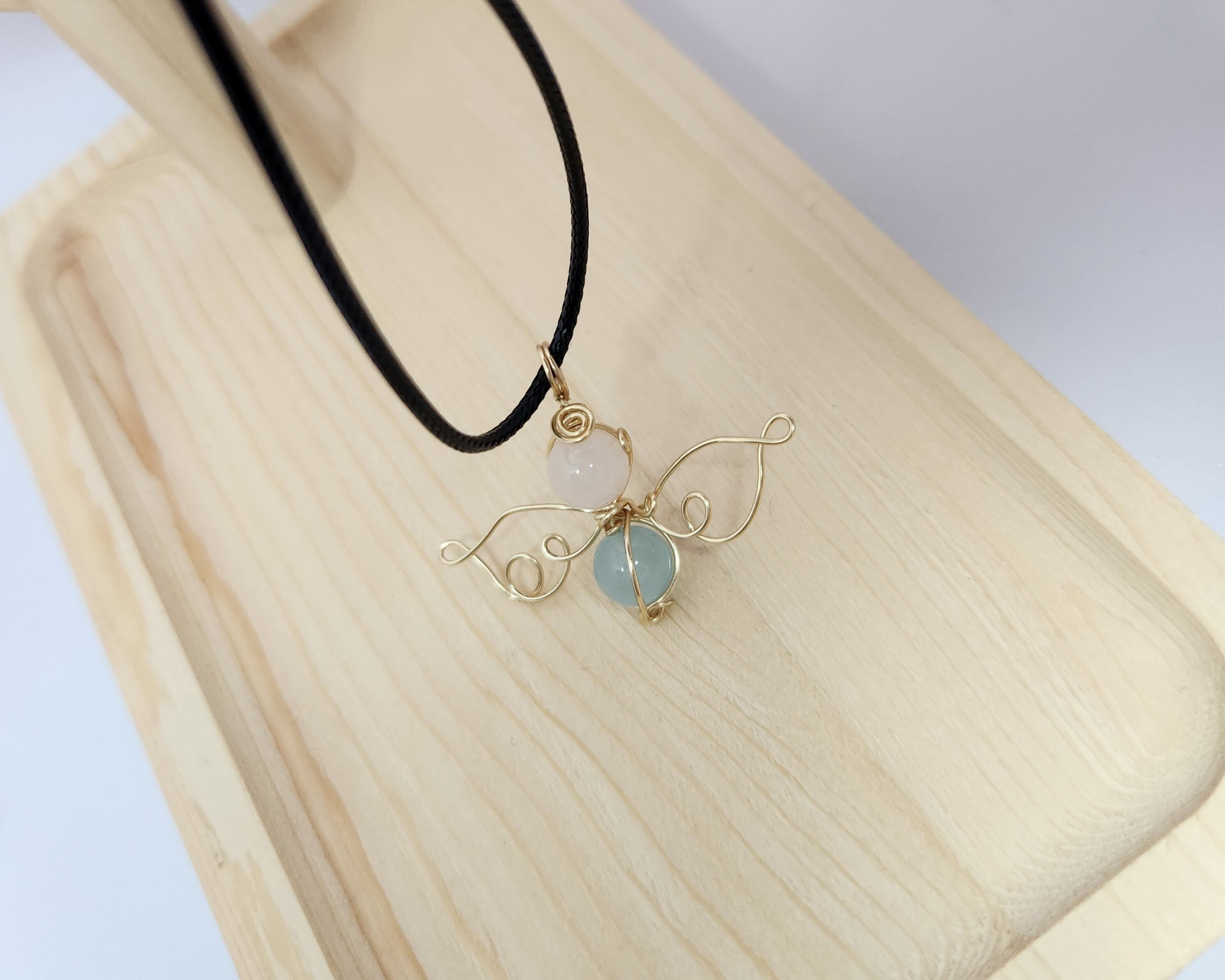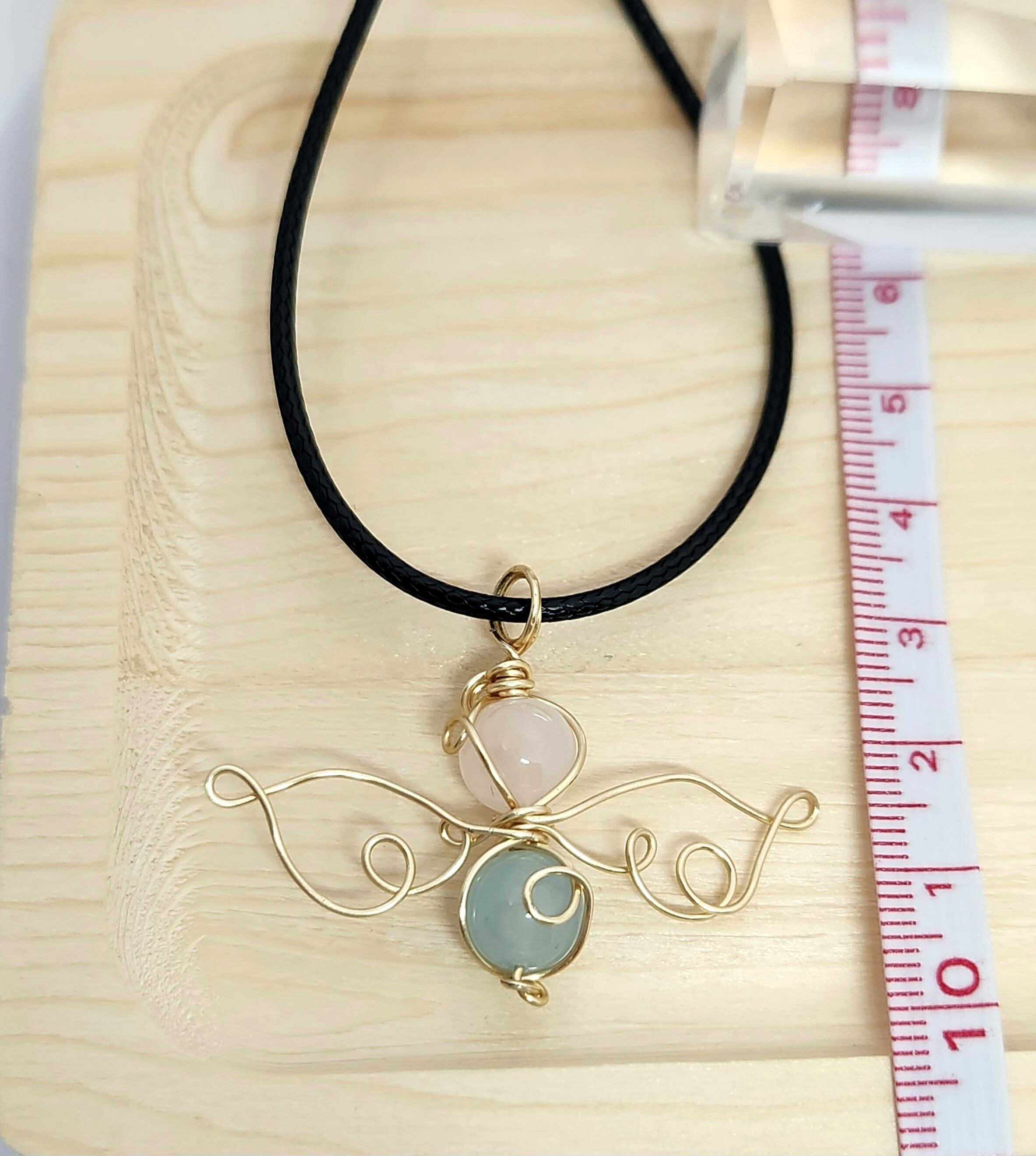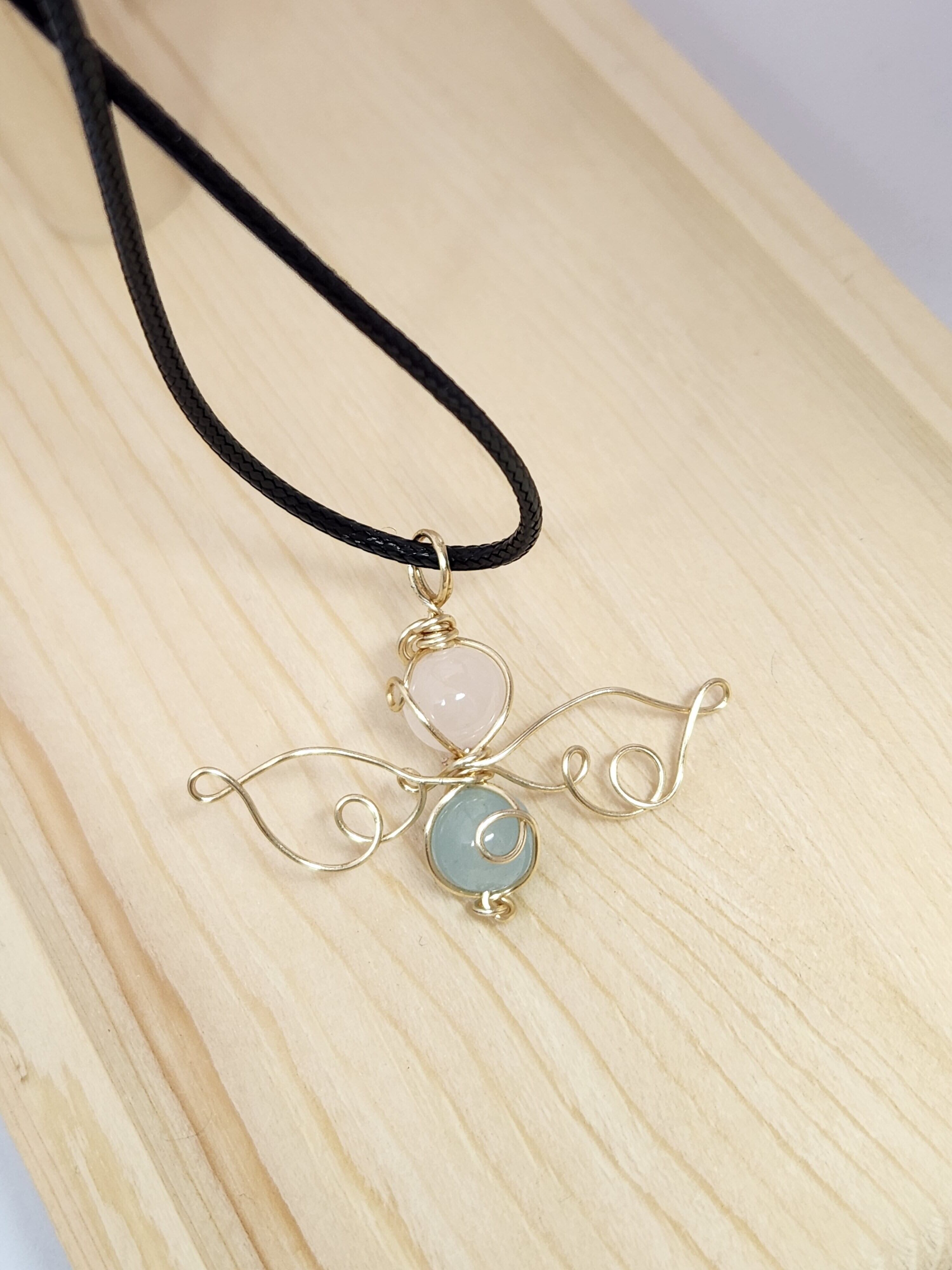 優雅な天使モチーフのローズクォーツ•ブルーカルセドニーのネックレス。天使のパワーと魅力を身に纏い、あなたの日常を彩ります。